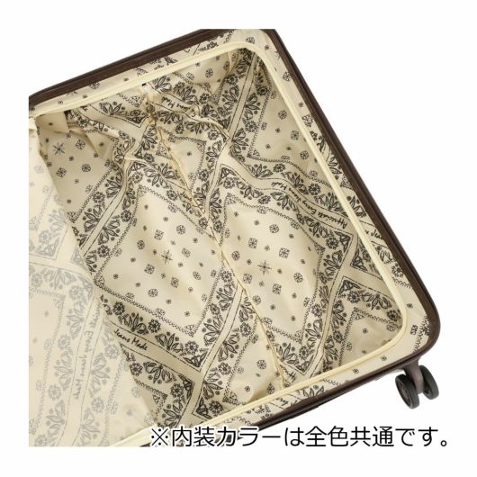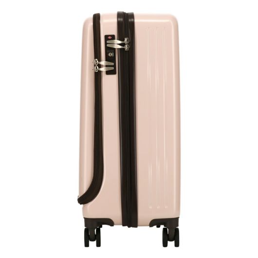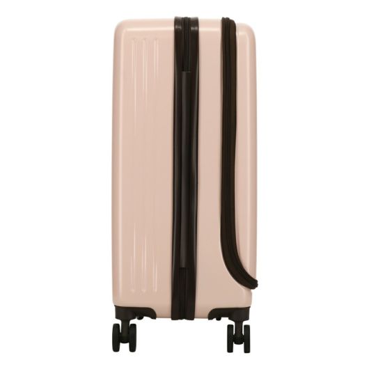 淡いカラーがおしゃれなスーツケースです。フロントオープンでスーツケースを立てたまま荷物の出し入れが可能。フロント内部のサイドの突っ張り用の布はマジックテープで外すことができるのでシーンに合わせて開き方を変えることができます。ポケットや収納も充実していて機能性を兼ね備えたスーツケースとなっています。