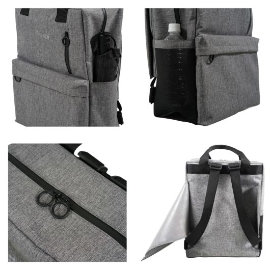 ROLSER初のバックパック×キャリーカートの2in1スタイル。サイドキャリーカートとして横押しを可能にしたT-SHOPは、日常使い、ビジネス、そして旅行まで。用途を限定しない多機能設計と洗練されたデザイン。水滴の侵入を防ぎ、急な天候の変化にも対応可能な止水ジッパーを搭載したバッグパックは、フロントポケットはもちろん、両サイドに通気性の優れたメッシュポケットと、ボトルや傘が収納できる21cmのポケットを搭載。タイヤが360°回転するフレームは、走行性が良くストレスなくご使用いただけます。また、ハンドル部を折り畳むことが可能となっており、飛行機内に持ち込み可能なサイズになっています。