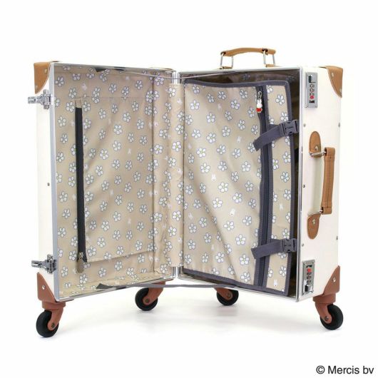ミッフィーとボリスのかわいいフェイスのトランクキャリー。合成皮革で作られておりクラシカルでおしゃれな雰囲気。内装のファスナートップはキャラクターの形で、細部までこだわった作りです。別売りのミニトランク(HAP3109-27)とお揃いで使っても可愛い!