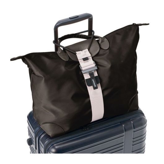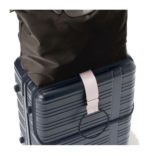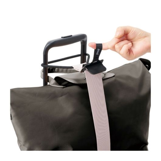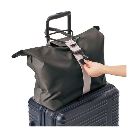 旅行や出張の際に荷物が増えてしまった場合や、サブバッグの持ち運びが便利になる一品です。幅広ベルトと強力ゴムでスーツケースの上にガッチリ固定できます。ベルトをスーツケースのハンドルに通してバッグを留めれば簡単に固定できます。カラビナやキーホルダーが付けられるループ付きです。