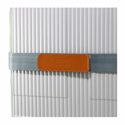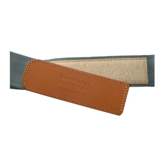 イノベーターロゴが入ったレザーを使用。マジックテープタイプで脱着スムーズ!アルミ素材のバックルは預け入れの際の衝撃にも強く作られています。
