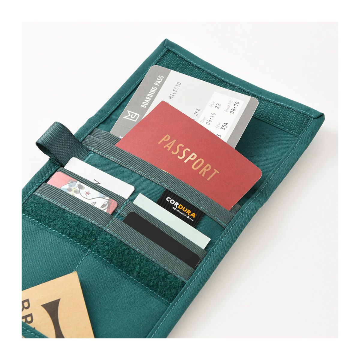 チケット、パスポート、紙幣・硬貨がそれぞれ収納でき、カードホルダーが4つ付いたセーフティポーチ。チケットやボーディングパスを縦に収納してロングでも使える2WAY仕様です。すぐに取り出したいスマートフォンなどが入る外ポケット付き。防犯のため服の下からショルダー掛けしやすいよう、コードを長く設計しました。