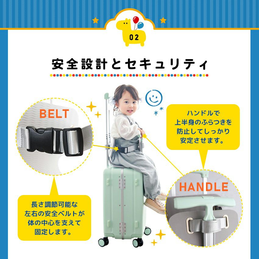 他の画像を見る NORICCO ノリッコ スーツケース ノリッコ 子どもが乗れるキャリーケース スーツケース 30L 51cm 4.6kg 機内持ち込み lff-carryon NORICCO|キッズキャリー フレーム クッションシート付属 ストッパー スマホスタンド フック TSAロック搭載 家族旅行 6カ月保証 販売価格 ¥ 19,800 税込 詳細を見る お気に入りに登録する