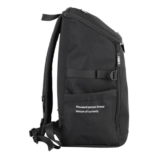 コラボモデルで人気の斜め型ボックスリュックをシンプルデザインにしました。大容量35L、新規で追加した側面のファスナーポケットがポイントです。内装PCポケットには4cmのマチがあるのでPCとタブレットやファイルなどをまとめて収納可。中がゴチャつかず整理整頓がしやすくなっています。