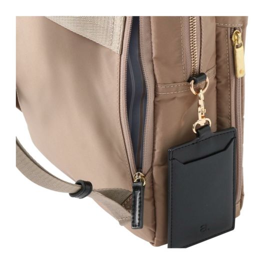 前面:ダブルファスナーポケット×1(内側:フリーポケット×2、ペンホルダー×2、キーフック×1、ファスナーポケット×1)