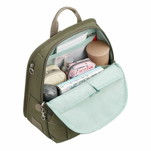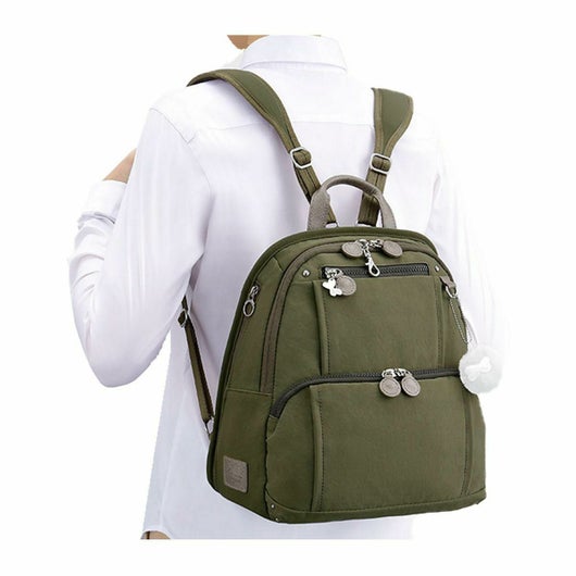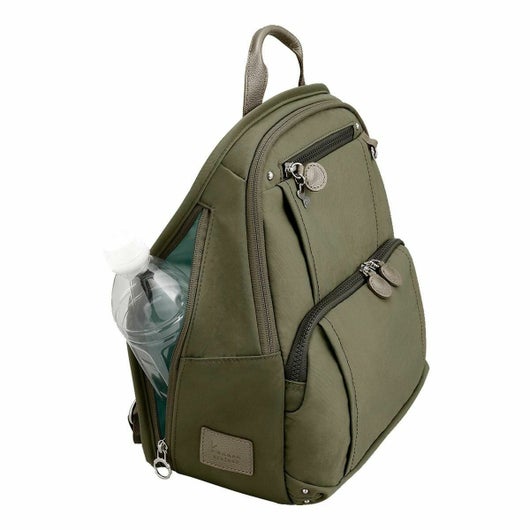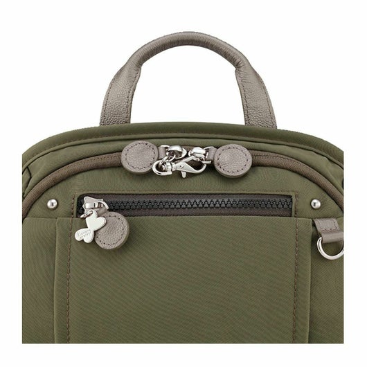 シャリ感のある素材がスタイリッシュな、普段使いしやすいカジュアルテイストの多機能バッグ。