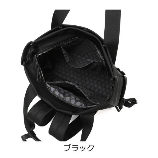 幅広のテープ使いが印象的なシンプルデザインの本体は高密度ナイロン素材を使用し裏地に「籠目柄」をプリント。