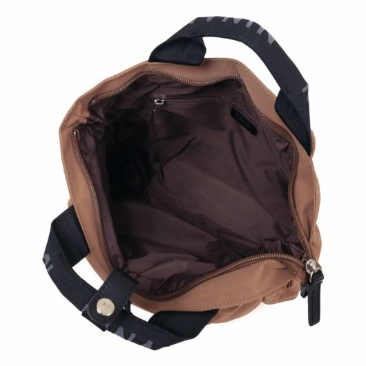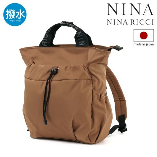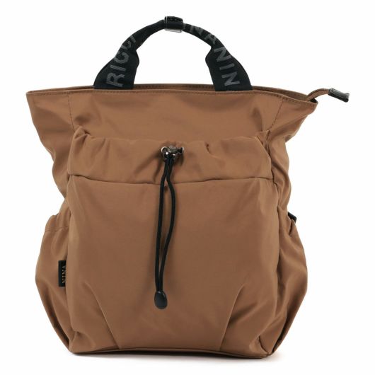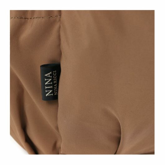 本体素材にコットンとナイロンの混紡素材64クロスを使用。ニナリッチのアパレルのディテールでも多用されているドローコード(巾着)を前ポケットに使用し、64クロス特有の風合いとともに独特の雰囲気を醸し出しているバッグシリーズです。