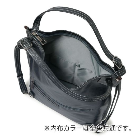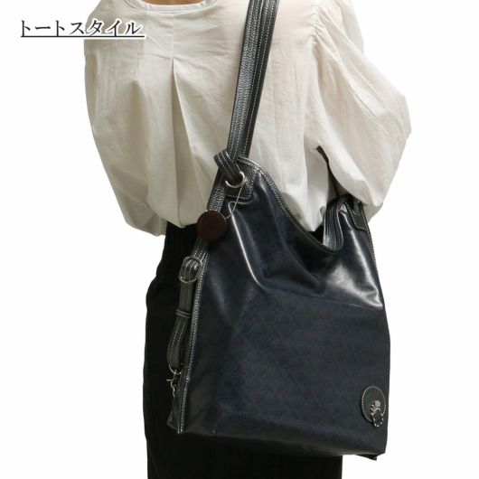 シュッとショルダーを引っ張るだけでリュックにできる3WAYバッグです。他にはトート持ち、斜め掛けでお使いいただけます。