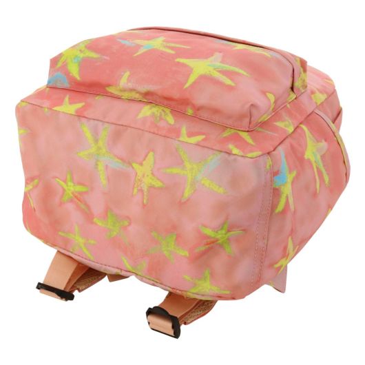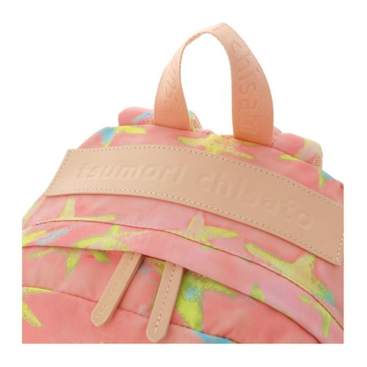 ファスナーを開けるとポップな色遣いの裏地が可愛く、ネーム入りのテープもポイントです。