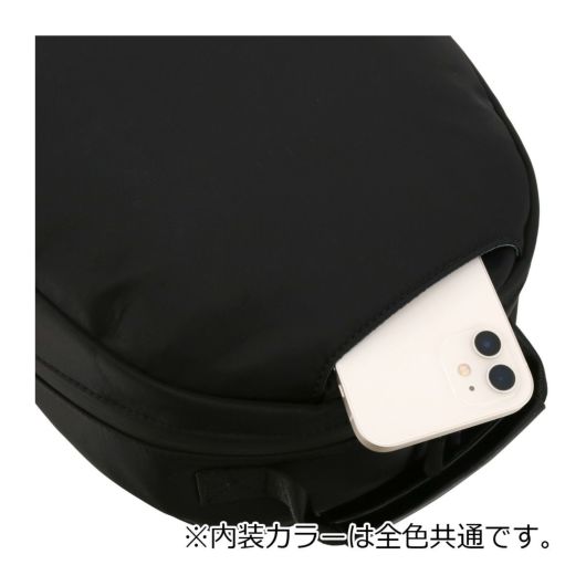 背胴には長財布などを収納できるファスナーポケット、スマホなどを収納できる小ぶりなオープンポケットが付いています。