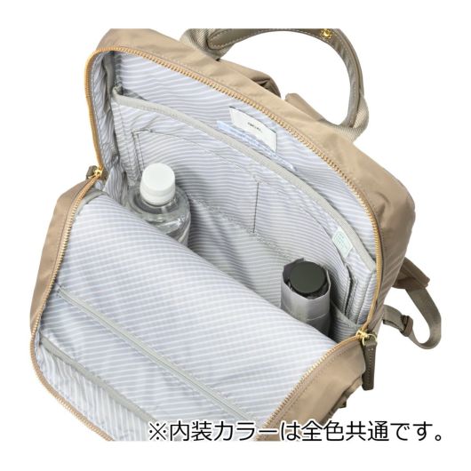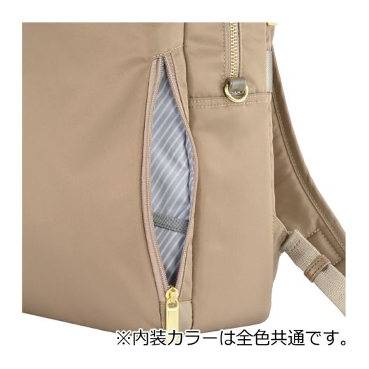 前面:ダブルファスナーポケット×1(内側:フリーポケット×1、ペンホルダー×2、キーストラップ×1)