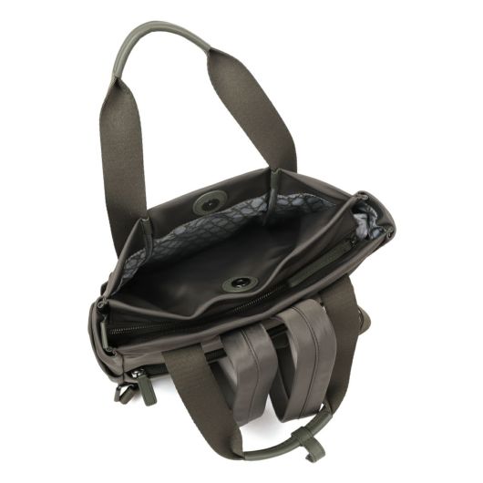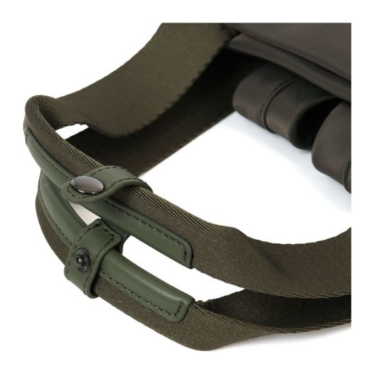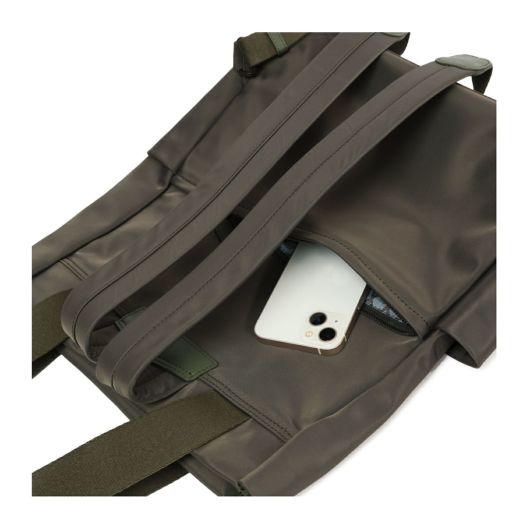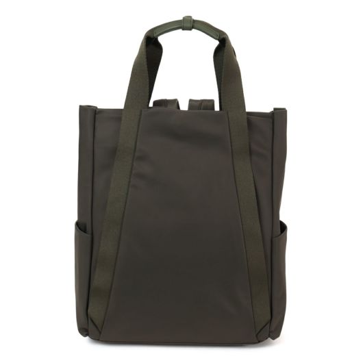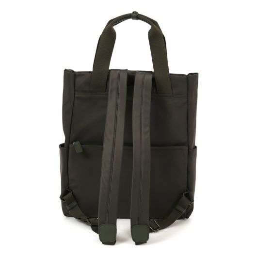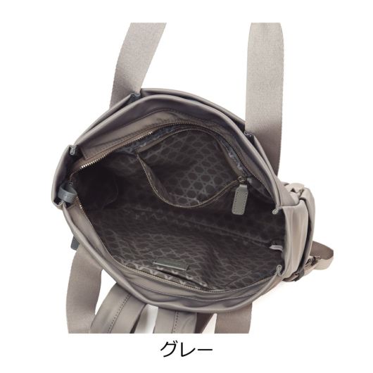 幅広のテープ使いが印象的なシンプルデザインの本体は高密度ナイロン素材を使用し裏地に「籠目柄」をプリント。