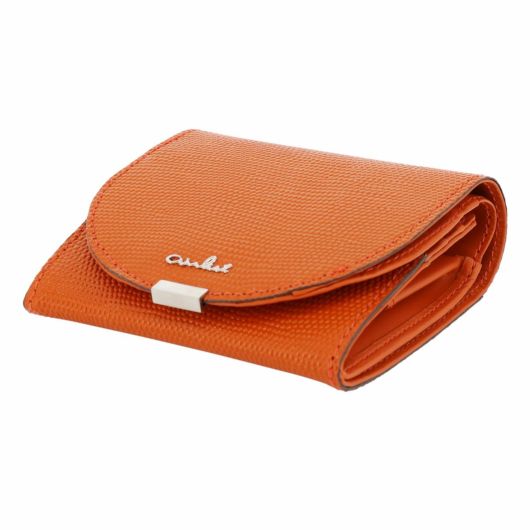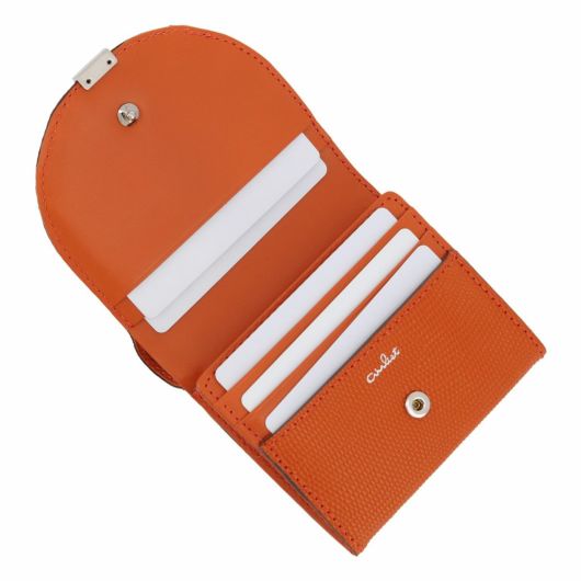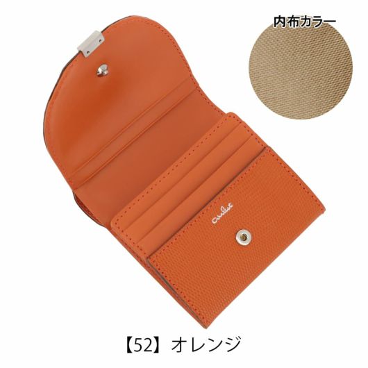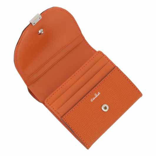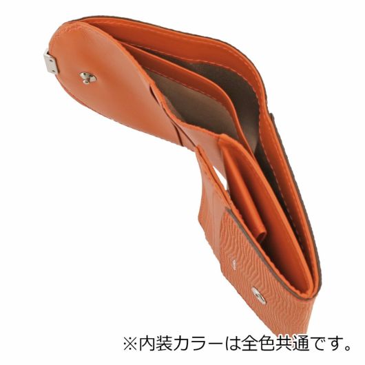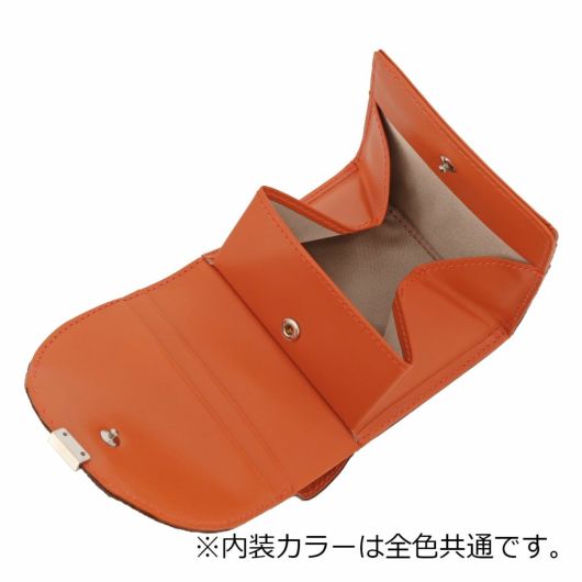 ローマ神話に登場する月の女神の名前に由来する「ルナ」シリーズ。満ちてゆく半月の円弧をイメージしたフラップに、小さなくわえ金具を付けました。つややかなリザード型押しは、上品な輝きを放ち、また傷が付きづらいのも特長です。