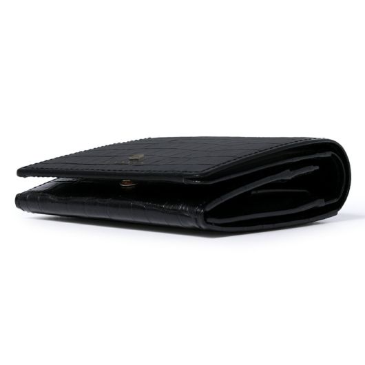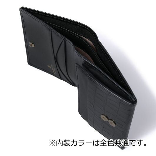 凹凸の少ないやさしい雰囲気のクロコ型押し牛革を使用したベーシックでエレガントなお財布です。