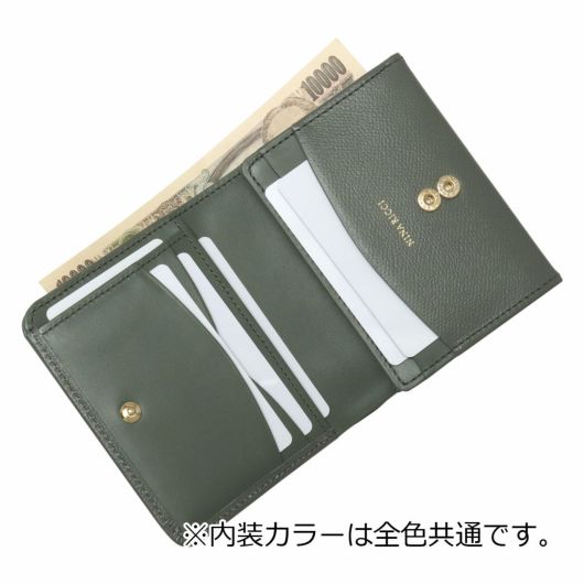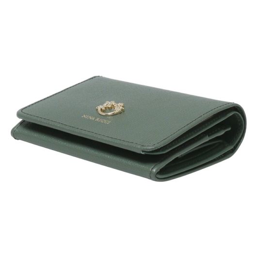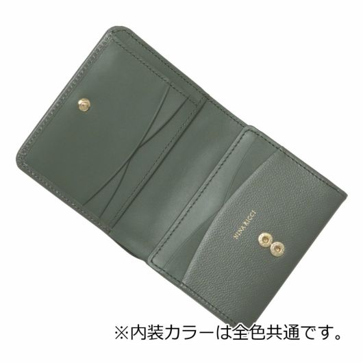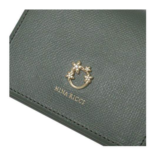 NINA RICCIコレクションで使用されている花柄をモチーフにしたリング状のブローチがエレガントでありながら大人可愛い印象のお財布シリーズ。表素材には傷が目立ちにくい型押しの牛革を、内装には同色系のスムースな牛革を使用しています。