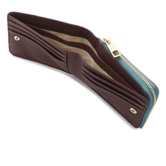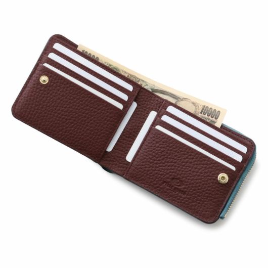 ベーシックなデザインの二つ折り財布は、L字ファスナーの小銭入れが財布を閉じたまま使用することができて、とても便利です。