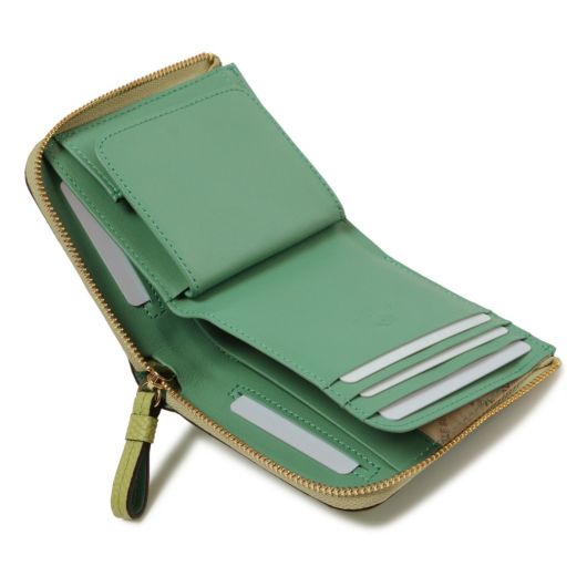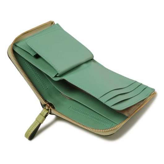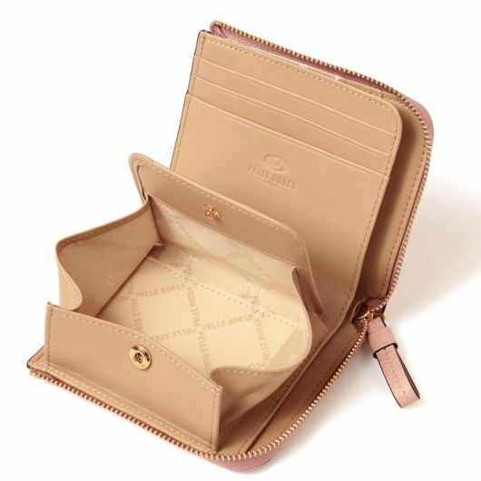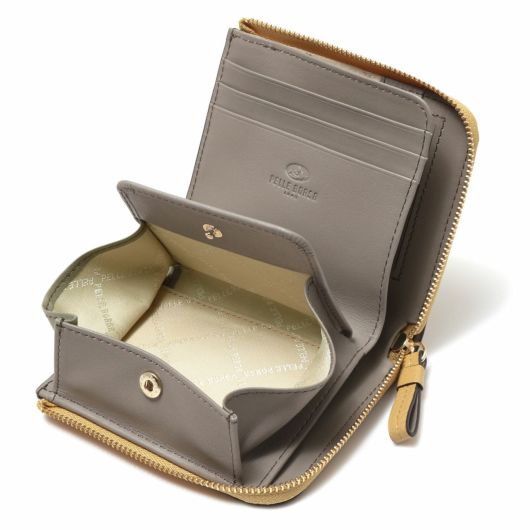 カラー展開は通年使える上品なカラーリングです。人気のミニL字財布の小銭入れをボックス型にアレンジし、より使いやすくなりました。コンパクトなサイズながら必要なものはしっかりと入ります。