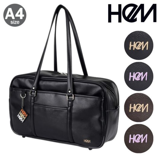 ボトルホルダーとPCポケットを備えた充実した内装と、可動式底板が付いた機能性抜群のスクールバッグ。持ち手が長いので肩へ掛けやすいのも◎。HeMのロゴチャーム付。