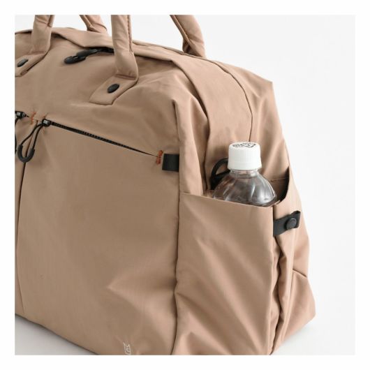 外装には仕分けに便利な2つのフロントポケット、ペットボトルや傘を収納できる両サイドのポケット、キャリーオンにも対応する背面のファスナーポケットを搭載し、ミニマルなデザインとは裏腹に使い勝手を考え抜かれたポケットの配置が魅力です。