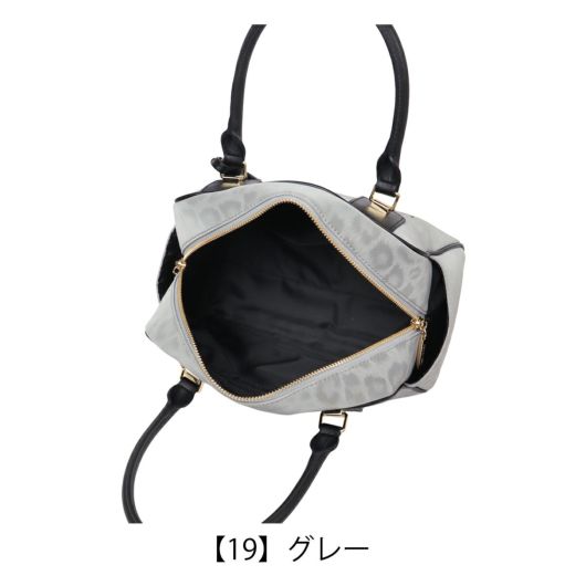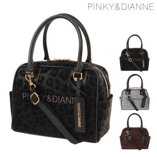 ソフトで手触りの良いヒョウ柄素材を贅沢に使った高級感あふれるシリーズ。トーンオントーンの配色なのでインパクトが強めに見えがちなヒョウ柄も、シックで洗練された印象にしあがっています。大きめにいれたロゴの刺繍もポイントです。小さめながら収納力があり、カジュアルに持てるPINKY&DIANNEらしいボストンバッグです。