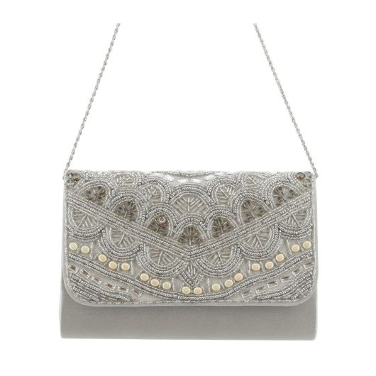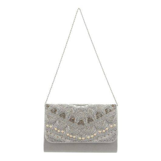 艶やかなガラスビーズがアクセントのビーズ刺繍フラップクラッチ。
