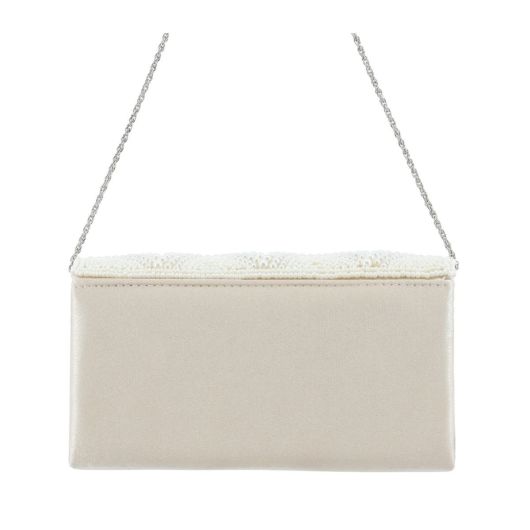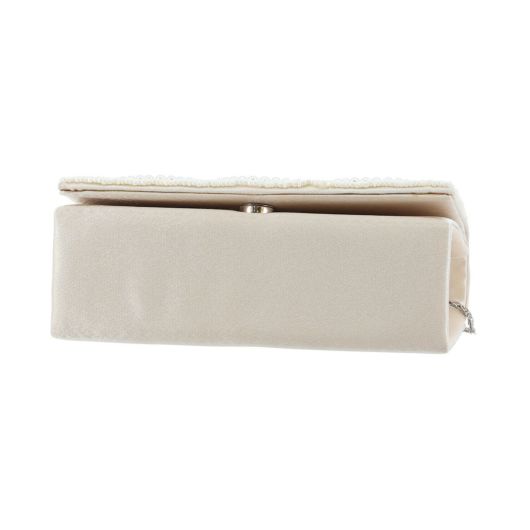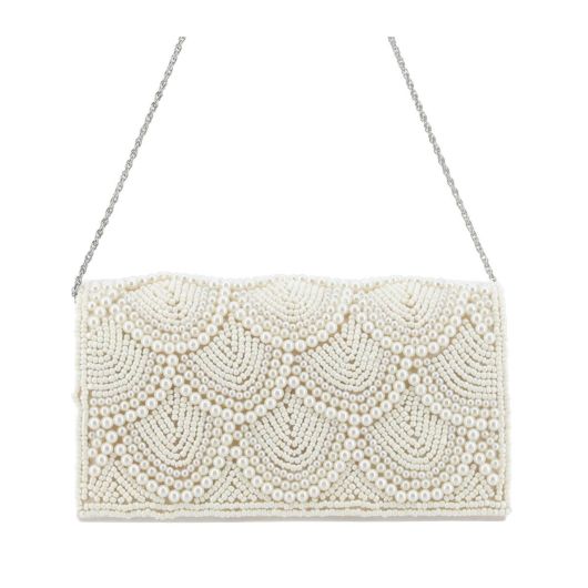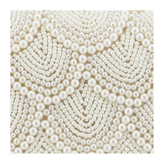 パールをたっぷりとあしらった華やかなうろこモチーフのミニクラッチ。