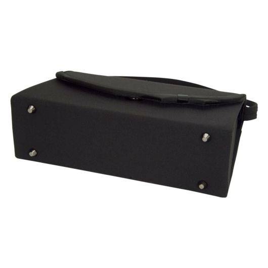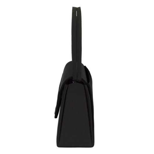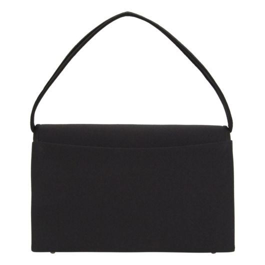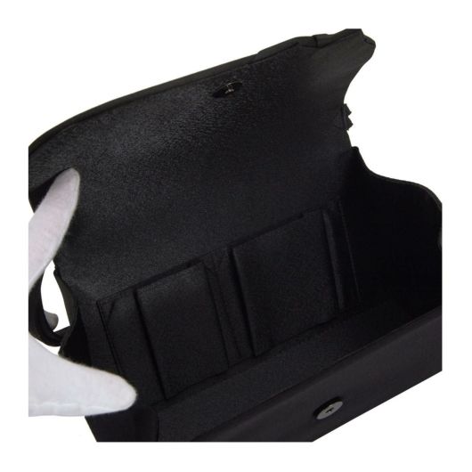 フラップの縁部分に控えめなリボンを施した上品なブラックフォーマルバッグで、マット感あるポリエステル素材が高級感を演出しております。付属品として手提げ、袱紗がついております。