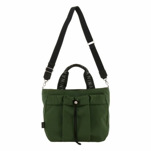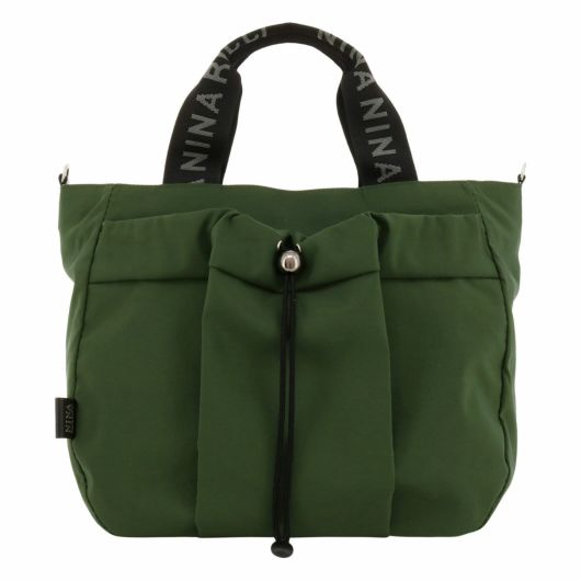 ニナ リッチのアパレルのディテールでも多用されているドローコード(巾着)を前ポケットに使用し、64クロス特有の風合いとともに独特の雰囲気を醸し出しているバッグシリーズです。