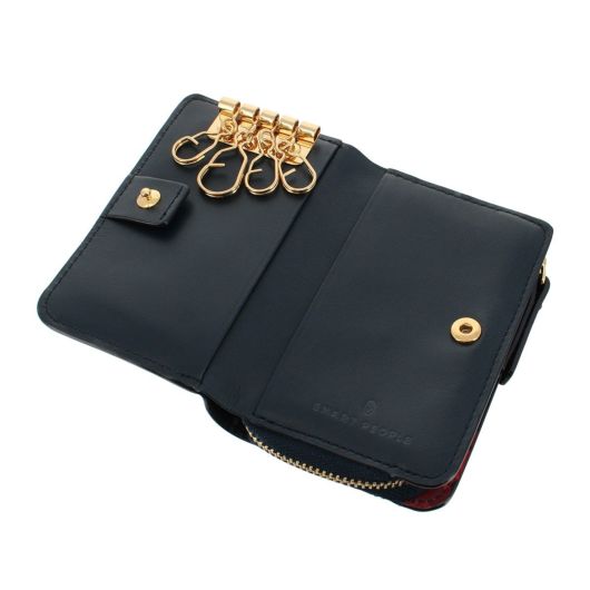 薄く漉かれた革を口金に巻く際、糊をムラなく均一に塗る作業やシワが出ない様に貼り付ける細やかな作業があり、口金も革を巻く用にひねりの位置を調節して、革巻き専用の口金を使用しています。王道ながらキメ細かで柔らかく、マットなツヤ感とプリントが特徴的なシリーズ。