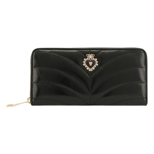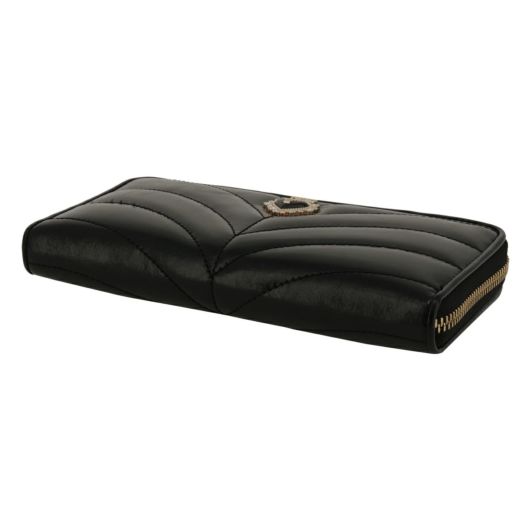 艶のあるレザーにステッチを効かせたクラシックな印象の「ポワロ」シリーズ。ブローチはブラックハートとバタフライを合わせた大人可愛いデザインです。使用している革は、傷も目立ちにくく扱いやすいのもポイントです。デザインに合わせて内装もゴールドプリントのクラシックな裏地にしています。