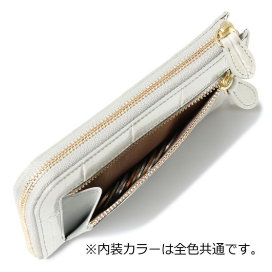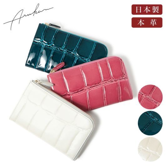 高級感のあるワニの尻尾の型押しにエナメル加工を施しました。持っているだけで少し贅沢な気分にしてくれます。