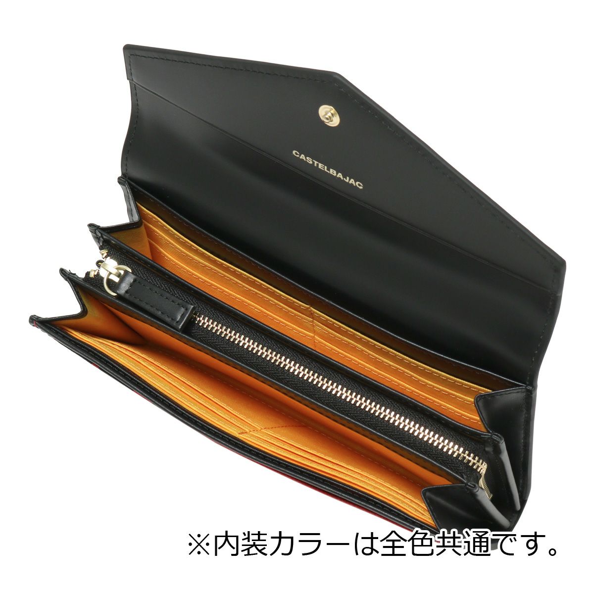 ビビッドカラーのレザーに、大きなロゴが印象的なカステルバジャックのかぶせタイプの長財布。カードが12枚収納できる大容量仕様になっています。シックなモノトーンから、気分の上がるビビットまでカラーバリエーション豊富に取り揃えました。
