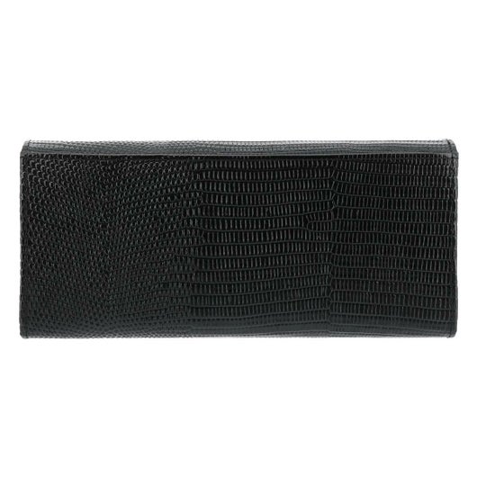 キレイな色目に仕上げたリザードの型押しと、ニュアンスが違う色目の内装のスムースの合わせが上品で洗練されたデザインです。主張しすぎないシルバー押しのロゴと、ニッケルの引き手、さりげなくあしらった小さいカシメが品と爽やかさを感じさせます。機能的ですが、全体的に薄くすっきりとしたつくりに仕上げました。