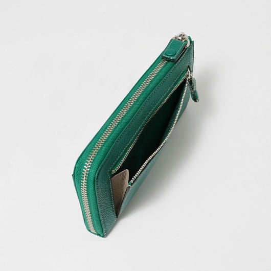 シュリンク型押(イタリア産)でしっかりと立体感を付け、イタリア産ならではベース処理技術と味出し加工によりソフトさを生かした仕上がり。内面にはトープ色を使ったクリーンなカラーコンビも特徴です。