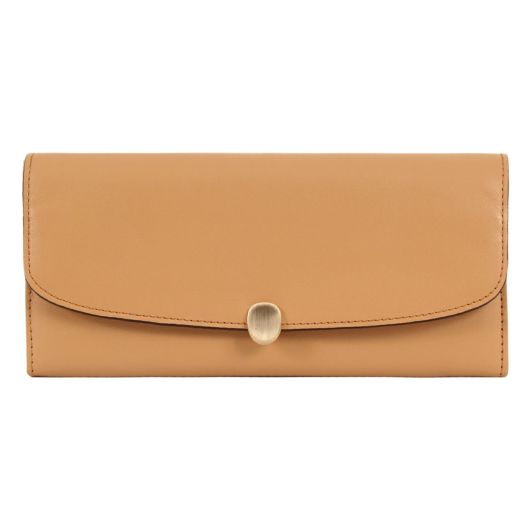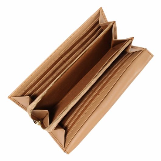 しなやかでタッチ感の良いイタリアンレザーが、エレガントでリッチな見映え。薄い仕立てと素材のしなやかさが相まって、スッキリとしながらも充分な収納力を兼ね備える。ビーンズのような流線形のオーバル型の金具がポイント。
