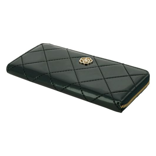 パール入りのエナメルにキルト風の熱加工をして高級感を出しました。内側は牛革を使用しているので耐久性もあります。