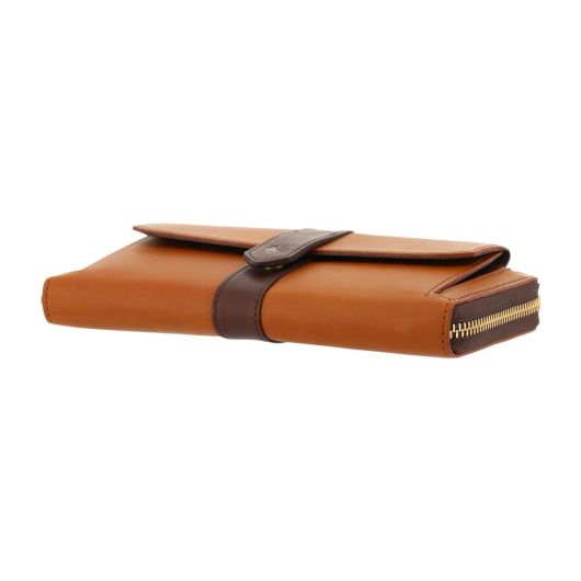 表側のベルト部分がデザインのアクセントとなっており、カラーコンビネーションを楽しめるデザインにしています。内装には国産牛革を細部に渡って配し、高級感のある仕上がりとなっています。