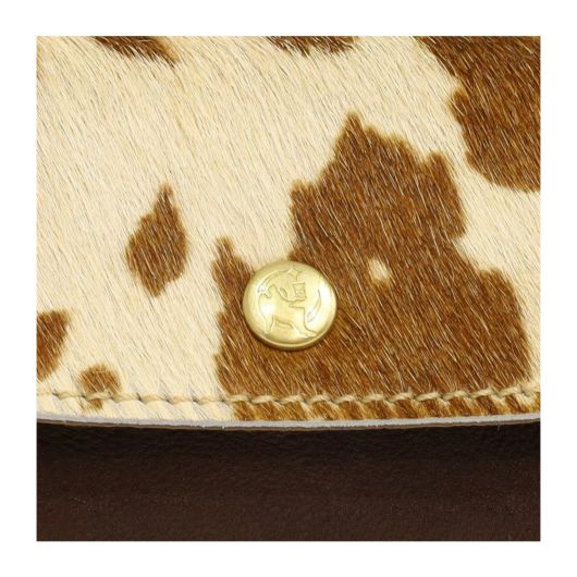 イタリア産の毛付き牛革です。フラップのプリントは、手作業で染め上げており、可愛さを演出。完成後、水分を加えながらひとつひとつ揉みあげて、自然なボリューム感を出しています。毛足商品ですが、オールシーズン使えるシリーズです。
