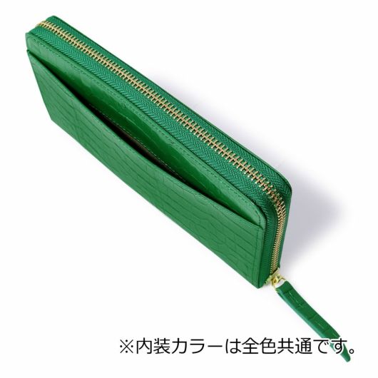 凹凸の少ないやさしい雰囲気のクロコ型押し牛革を使用したベーシックでエレガントなお財布です。