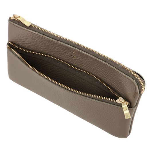 「大好きなお菓子をかわいく持ち歩きたい!」そんな思いから作った、カラフルな小物シリーズ。柔らかいイタリア牛革を使用した、スクエア2段ポーチ。とても軽く、水濡れや汚れにも強い素材なので、日常使いもしやすいです!横長の形なので、メイクブラシや、ボールペン等、長い物の収納にも使いやすいです♪お札や通帳の収納にもちょうどいいサイズ。板チョコがちょうどよく入ります♪