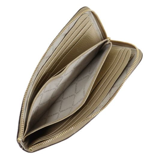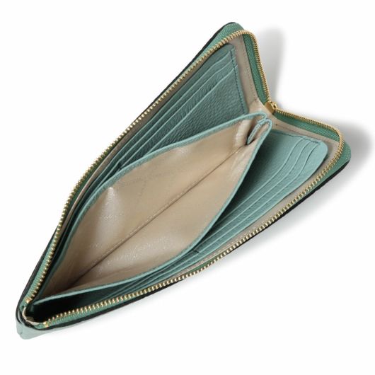 高級牛革の型押しシュリンクを使い、常に手に取るアイテムと考え素材感を大切にしたレネットグッズシリーズです。L字ファスナータイプの長財布で使い勝手も抜群です。