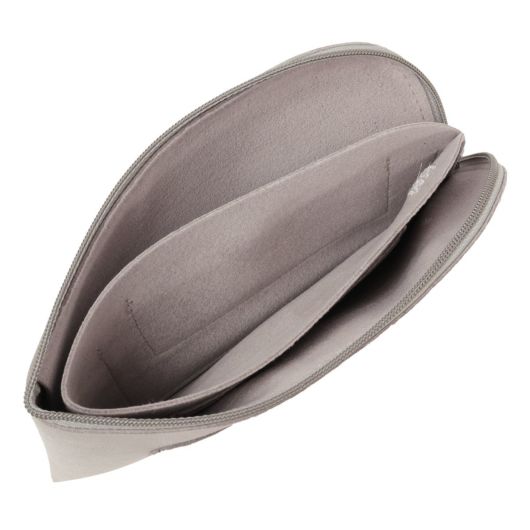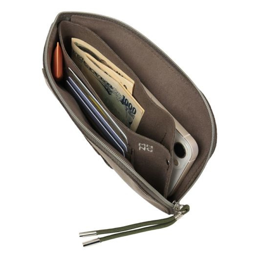 マイクロファイバー『ウルトラスエード』を用いたLジップロングウォレットです。前面にカードポケットがあり、内側はオープンコインポケットがひとつ備わっています。コインポケットの両面にはカードが4枚入るカードケースとマルチポケットもついています。こちらのタイプはお札は折らずに収納が可能です。また家庭洗濯が可能です。ウルトラスエードは経年変化も少なく摩擦にも強いため、使用していても毛羽立ちなどはありません。