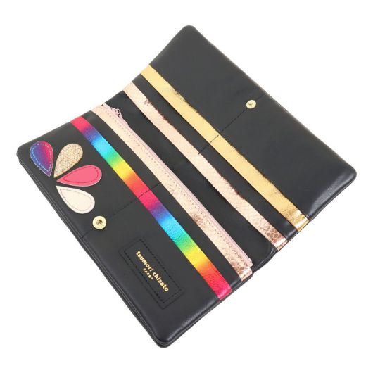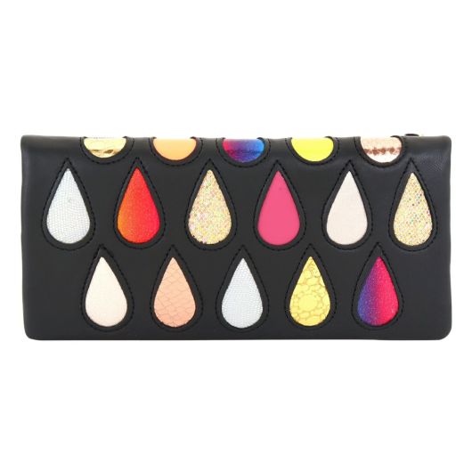 雫(drops)型に様々な革でパッチワークされた「ドロップス」シリーズの長財布です。雫型のキュートなチャームが可愛くアクセントになっています。キュートなだけでなくお淑やかさも兼ね備え、様々なファッションにピッタリなアイテムです。