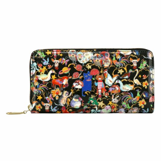 森にいる様々な動物たちがひしめき合っている様子が全面にプリントされています。柄の一部には色糸を使用して刺繍しているのがポイント。可愛らしく、使うたびに気分が上がります。
