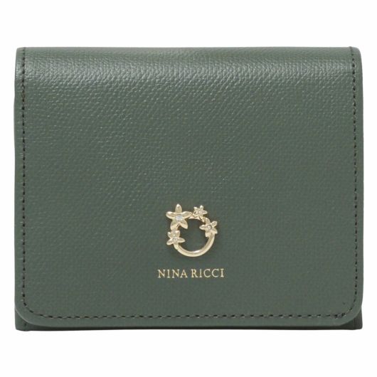 NINA RICCIコレクションで使用されている花柄をモチーフにしたリング状のブローチがエレガントでありながら大人可愛い印象のお財布シリーズ。表素材には傷が目立ちにくい型押しの牛革を、内装には同色系のスムースな牛革を使用しています。
