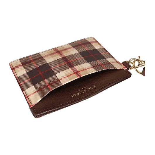 国産原皮を高度な技術でスムースレザーに仕上げました。革を仕上げる前に柔軟にすることで、手に吸い付くようなソフト感となっています。(フルクロムなめし、セミアニリン仕上げ)型は薄くスリムに仕上げ、ロゴの箔押し、金具をゴールドに統一してエレガントを表現しています。ハウスチェックとクリーンなカラーリングのコンビです。