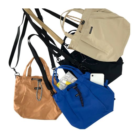 日常使いでも旅先でも、大きく開いて出し入れしやすく。撥水加工で水濡れはサッと一拭き。必要最低限の持ち歩きに。巾着式で大きく開閉でき、出し入れしやすいサコッシュがオススメ。