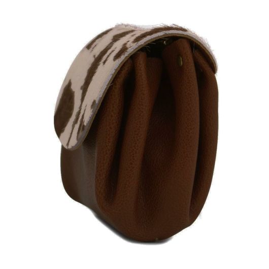 イタリア産の毛付き牛革です。フラップのプリントは、手作業で染め上げており、可愛さを演出。完成後、水分を加えながらひとつひとつ揉みあげて、自然なボリューム感を出しています。毛足商品ですが、オールシーズン使えるシリーズです。