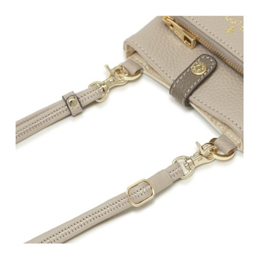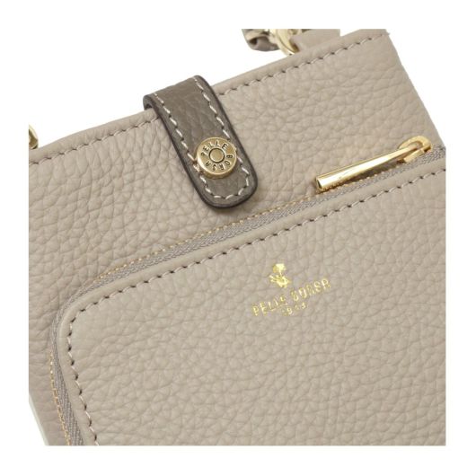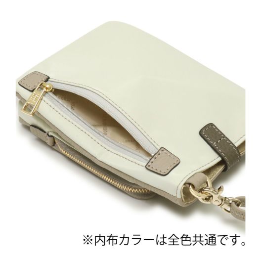 その名にふさわしい、上品でかわいいニュアンスのシリーズです。もっちりふっくらした上質な日本製シュリンクレザーは、マットな質感や柔らかな印象のオリジナルカラーがやさしく上品な印象です。携帯、ミニ財布、パスケース、ハンカチ、リップなど常に持ち運びたいものをしっかりと収納できます。本体、前ポケットなど見た目以上に収納に優れています。前ポケットにはペレボルサの二つ折り財布が入る仕様となっています。